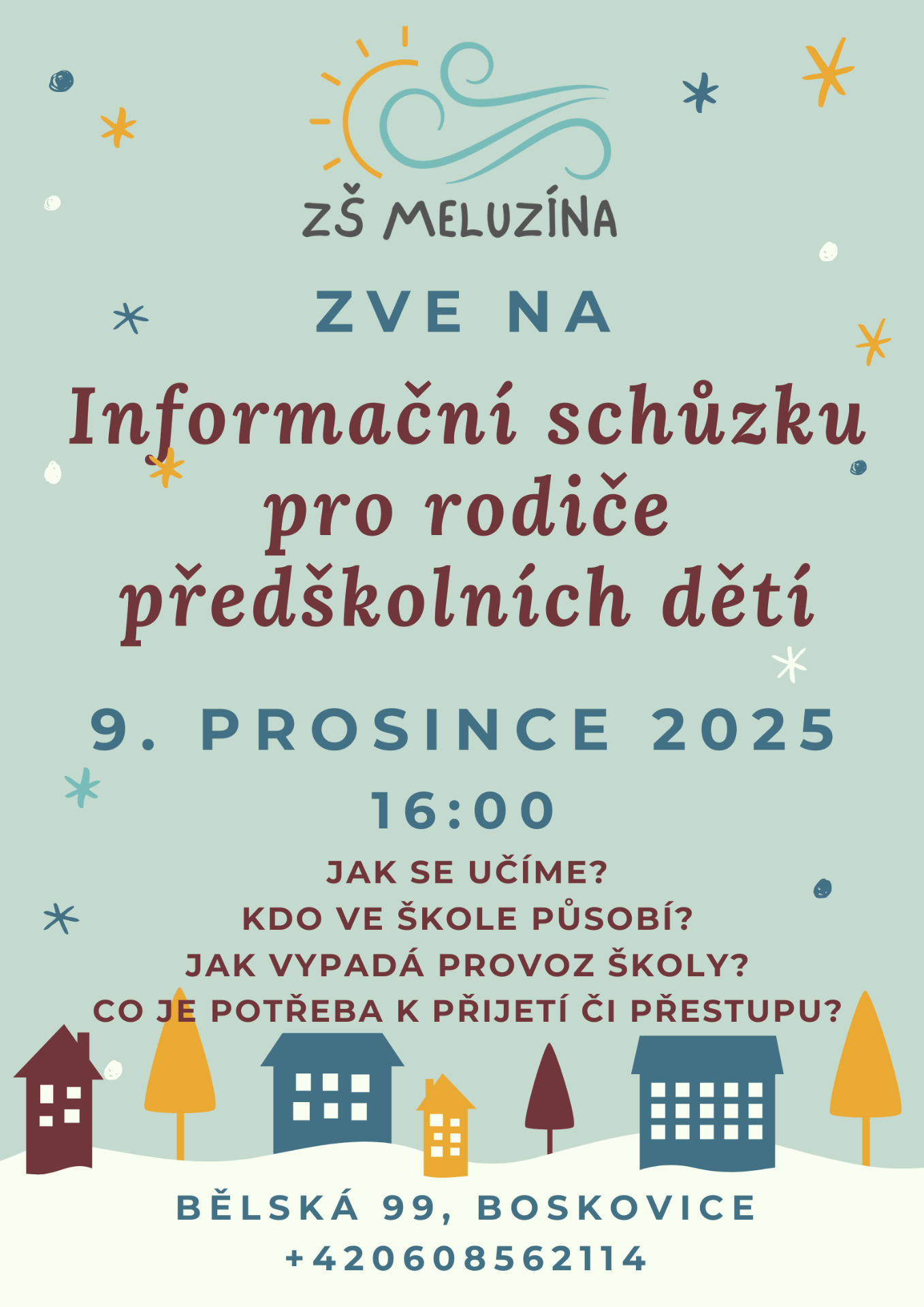 9. 12. 2025 bude u nás ve škole probíhat informační schůzka, kde se dozvíte, jak to v Meluzíně funguje.